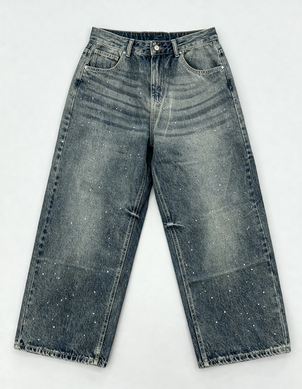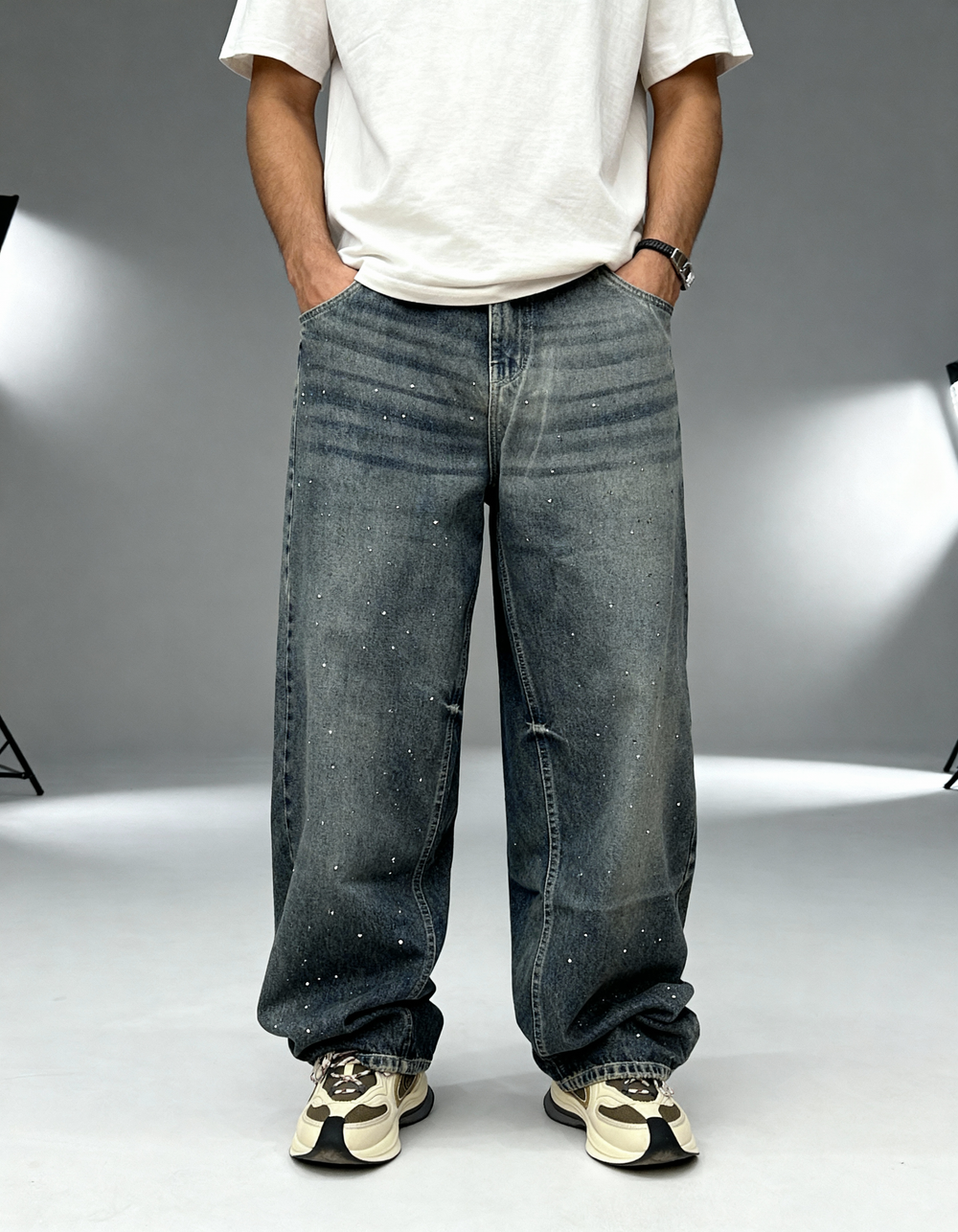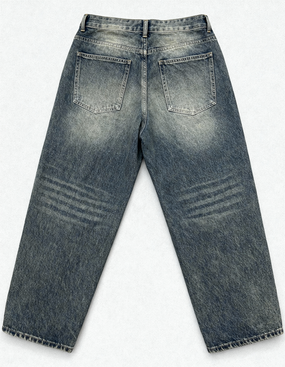 Natural crease lines across the upper thighs add depth and personality, while the four-way stretch denim ensures comfort, flexibility, and easy movement without compromising the oversized silhouette.